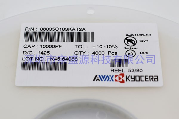 產品名稱:AVX陶瓷電容 0603 50V 0.01UF 06035C103KAT2A