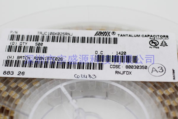 AVX鉭電容,AVX就是一家從事無源電子元器件和互連接產品的設計、開發、生產和銷售的公司,鉭電容是由稀有金屬鉭加工而成,先把鉭磨成微細粉,再與其它的介質一起經燒結而成。目前的工藝有干粉成型法和濕粉成型法兩種。鉭電容由于金屬鉭的固有本性,具有穩定好、不隨環境的變化而改變、能做到容值很大等特點,在某些方面具有陶瓷電容不可比較的一些特性,因此在很多無法使用陶瓷電容的電路上鉭電容被廣泛采用。其中AVX公司生產的鉭電容的產量相當可觀。