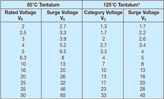 AVX鉭電容的額定電壓和浪涌電壓之間的關系