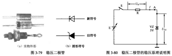 圖3-80所示穩壓二極管VZ的穩壓值為5V,若電源電壓低于5V,當閉合開關S時,VZ反向不能導通,無電流流過電阻器R,Ur=IR=0,電源電壓在經R時,R上沒有電壓降,故A點電壓與電源電壓相等,VZ兩端的電壓Uvz會在隨之變化。也就是說,當加到穩壓二極管兩端電壓低于它的穩壓值時,穩壓二極管處于截止狀態,無穩壓功能。