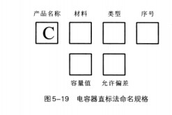 ①電容器的命名規格 電容器的容量值標注通常使用直標法,就是通過一些代碼符號將電容的容量值及主要參數等標識在電容器的外殼上。根據我國國家標準的規定,電容器型號命名由4個部分構成,容量值由2個部分構成。