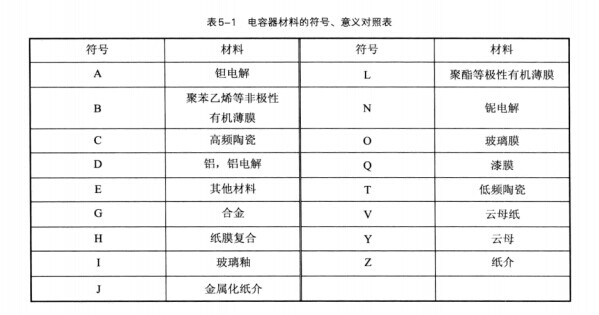 材料:用字母表示,表示電容器使用什么材料制成的;