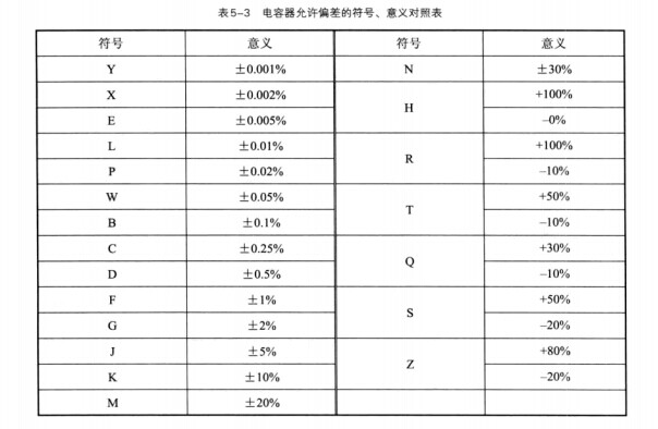 電容器允許偏差的符號、意義對照表如表5-3所示。