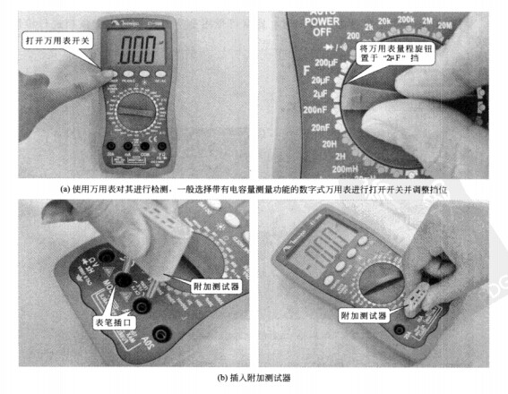 電容器有很多種,其檢測(cè)方法也各有不同,通常可以使用萬用表檢測(cè)電容器阻值的方法來判斷電容器的性能是否良好,用數(shù)字式萬用表的電容檔來檢測(cè)電容器的電容量。下面選取幾種不同類型電容器來具體介紹其檢測(cè)方法。