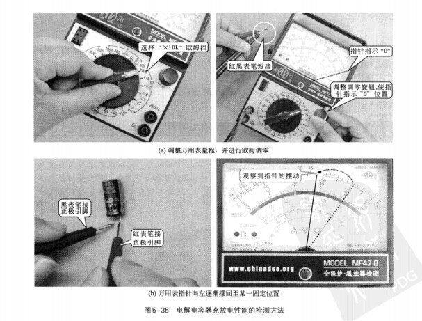 電解電容器充放電性能的檢測(cè)操作方法見圖5-35。