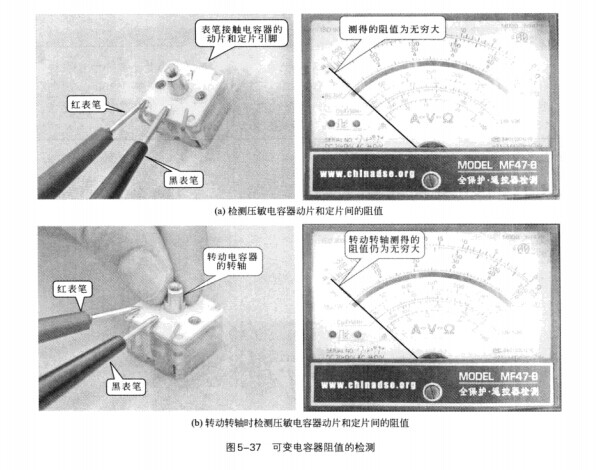 正常情況下,測(cè)得的阻值均為無窮大。若測(cè)得的阻值為零,說明動(dòng)片和定片的內(nèi)部有短路,絕緣介質(zhì)已損壞。