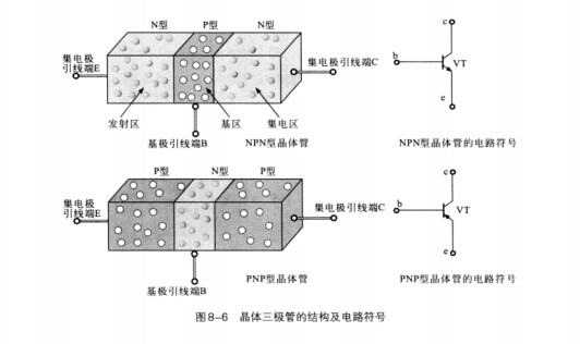 平面型和合金型晶體三極管的結構示意見圖8-5。